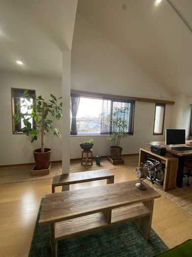 左写真上部からも見られますが、天井が高くなっており窓から光が差し込んで開放感のある空間となっております。